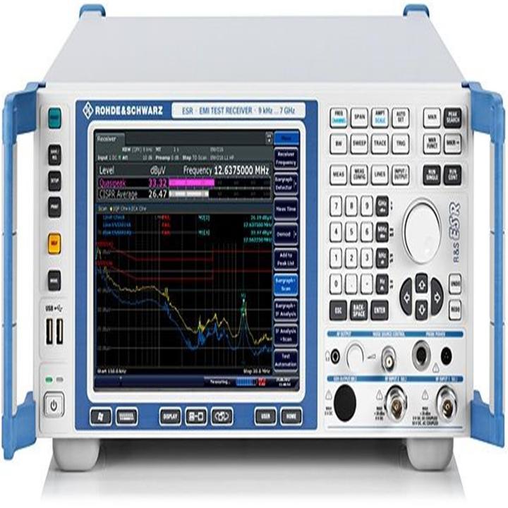 ESR3 是罗德与施瓦茨公司的 3.6 GHz 接收器。工程师在合规性测试期间使用电磁干扰 (EMI) 接收器。EMI 接收器是一种可以测量无线电信号的几种不同特性以及校准射频 (RF) 衰减器和信号发生器的设备。