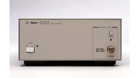 In conjunction with an optical spectrum analyzer, the incoherent light source Keysight 83437A allows you to measure insertion loss, crosstalk, bandwidth, polarization dependencies,and other parameters of passive optical components versus wavelength.