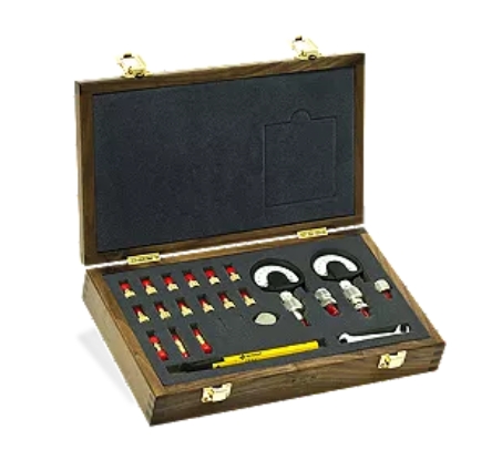 The Keysight 85058B standard Mechanical Calibration kit contains precision standard devices for characterizing system errors in the 1.85 mm interface of the Keysight network analyzer. The kit also includes an adapter to change the gender of the test port, a connector meter to verify and maintain the connector interface, and a torque wrench for proper connection.