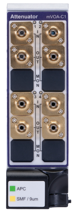 The multi-application platform (MAP series) adjustable optical attenuator (mVOA-C1) is a step motor and filter-based attenuator that achieves metrology-grade programmable attenuation performance in the industry's most compact package.