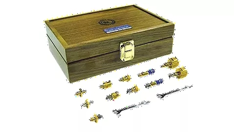 The Keysight 85056KE02 Mechanical Calibration kit contains precision standard devices for characterizing the system errors of the Keysight network analyzer. The kit supports the 2.92 mm SOLT calibration standard and includes only two fixed loads. It also includes adapters for changing the dimensions of the VNA test port from NMD 2.4mm to 2.92mm. Note that these adapters are used for the NMD 2.4mm test port of the VNA. They are not universal adapters. In addition, 2.92 mm series adapters (3) are available. The kit also includes 5/16 and 7/16 open end wrenches for proper connection. Includes standard definitions of PNA series VNA on USB memory sticks.