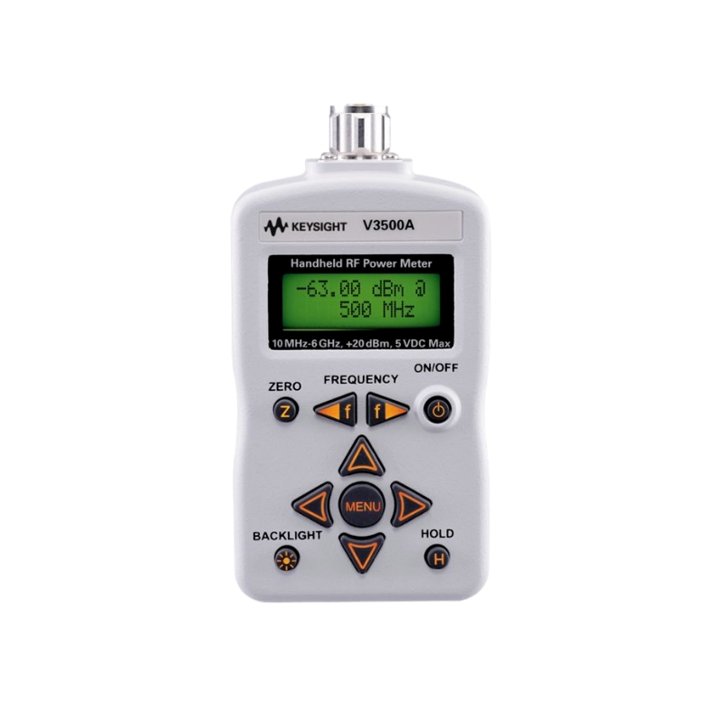 The V3500A handheld RF power meter is a compact handheld instrument that can precisely measure RF power in both field and manufacturing applications. The V3500A features an absolute accuracy of ±0.21 dB, a wide frequency range of 10 MHz to 6 GHz, and a measurement range of -63 dBm to +20 dBm, making it suitable for various RF measurement applications. Its built-in power sensor saves users the trouble of carrying the instrument and individual sensor modules. The V3500A is a truly portable tool that can be easily held in hand or placed in a toolkit. Optional portable cases with ring leather cases or shoulder straps are now available. To enhance flexibility, it can use batteries, AC-DC converter modules or be connected to a computer via a USB interface to obtain operating power.