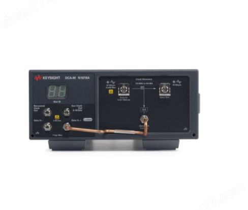 N1078A 光/电时钟恢复功能接收输入的数据或时钟信号,使用锁相环(PLL)电路锁定该信号,并输出恢复的时钟。恢复的时钟可以用作示波器(如 N1000A 和 N1090A、N1092 系列和 N1094 系列 DCA-M 示波器)或 BERTS 的定时参考。