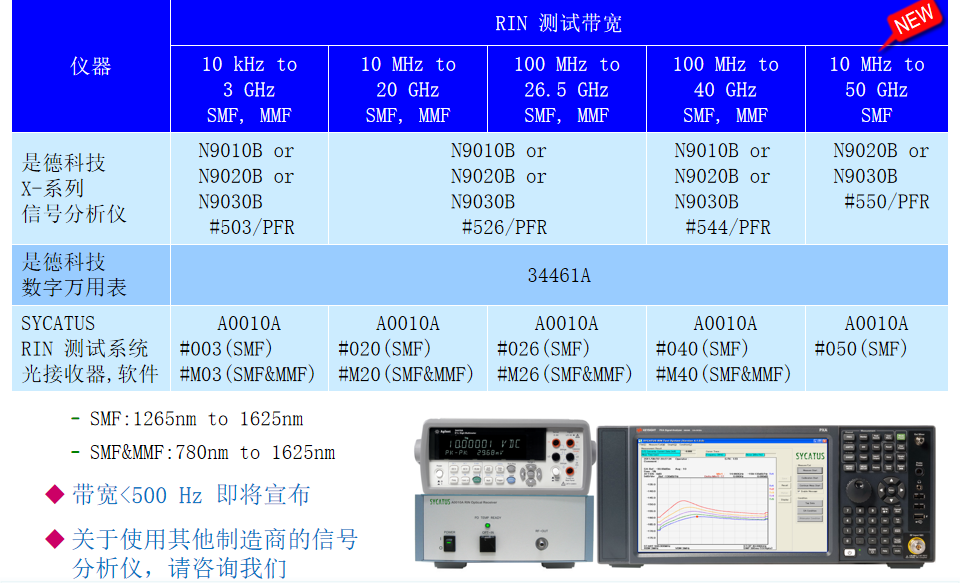 德天RIN测试系统由SYCATUS A0010A(光坐)和keysight N9020B(频谱仪)以及keysight 34410A(万用表)组成。