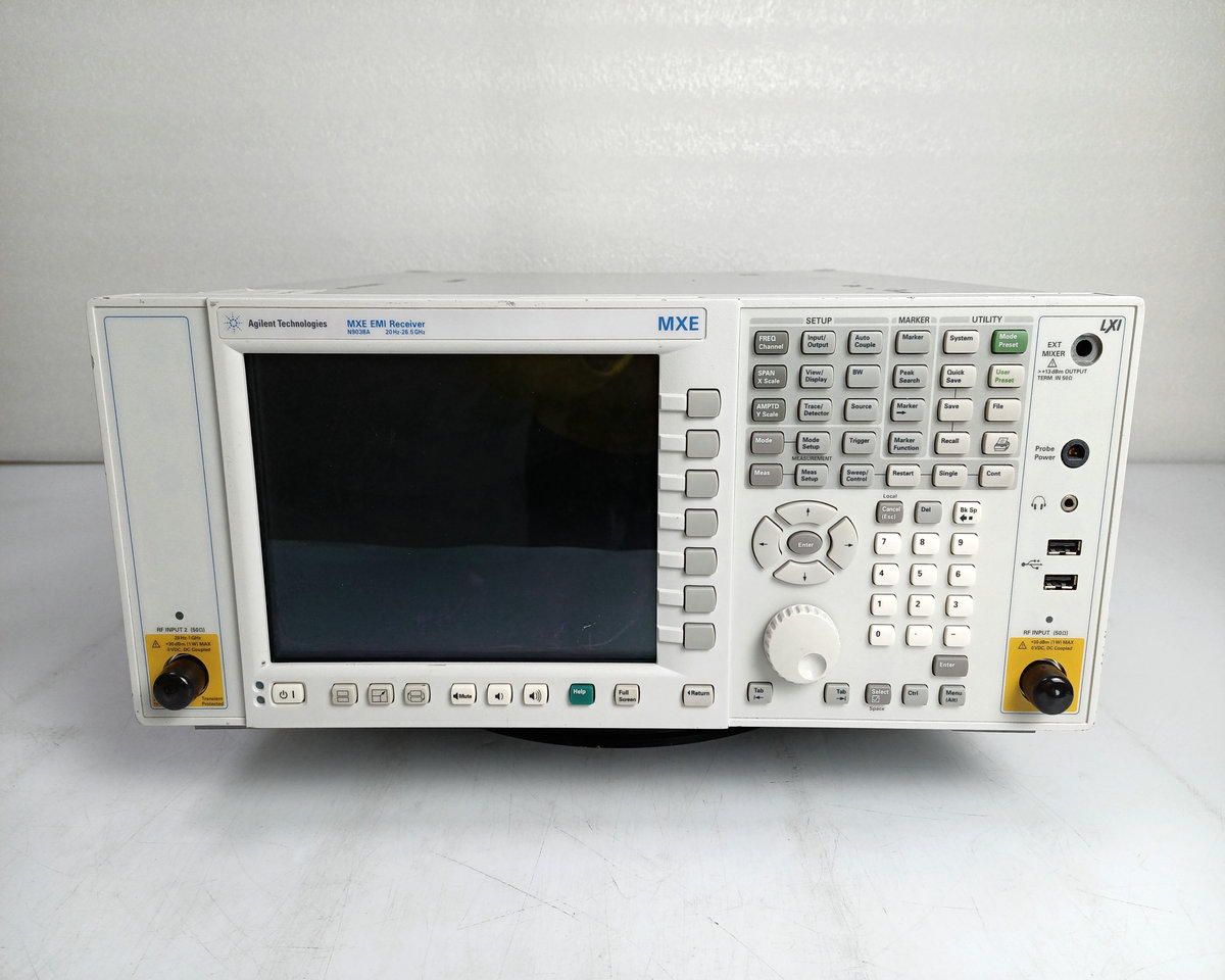 The Agilent N9038A is a standards-compliant MXE EMI test receiver and diagnostic signal analyzer built on an upgradeable platform. You choose the frequency coverage you need to fully test devices with outstanding accuracy and sensitivity across required ranges.