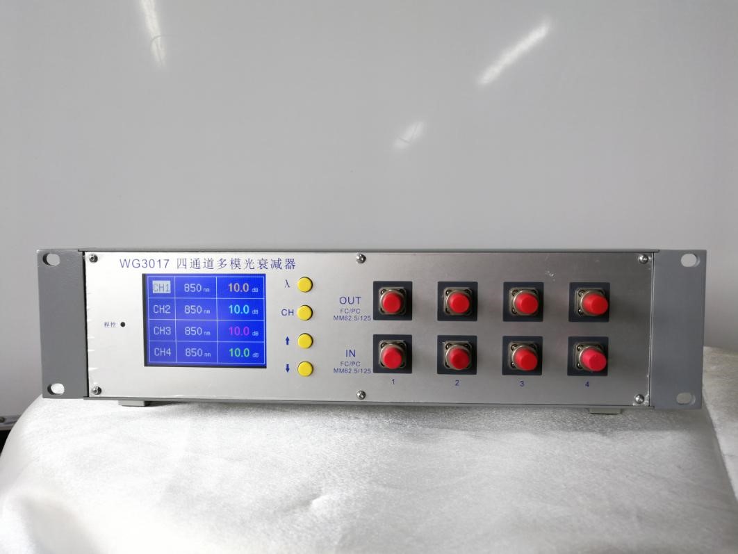 The WG3016 includes eight independent MEMS VOa-based single-mode dimmable optical attenuators operating at five commonly used operating wavelengths. Each channel has the output monitoring function, which can monitor the output optical power in real time. The device adopts the standard 20 standard chassis and the plug-in structure, and uses the 3.5-inch full-color LCD screen as the display interface, which forms a good human-computer interaction interface together with the keys. At the same time, the instrument is also equipped with usb and rs232 interfaces, which can be controlled by the upper computer program to complete all the test process and build an automatic measurement and control system.