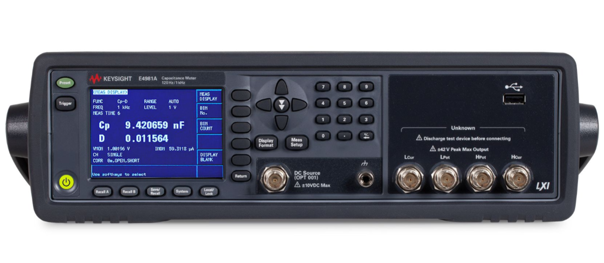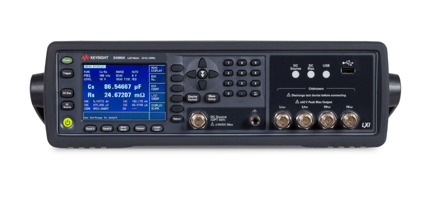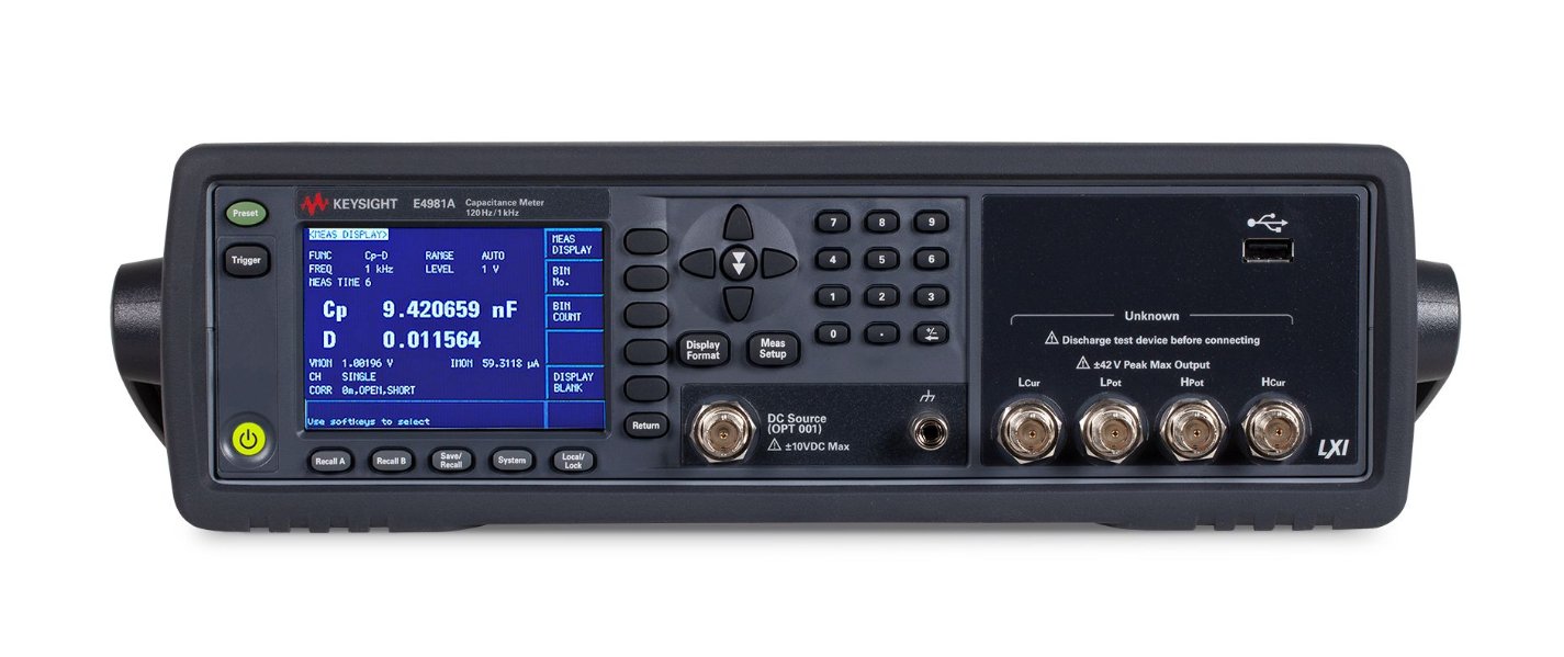 The E4981A capacitor meter can provide high speed and reliable measurement for ceramic capacitor testing in the production line. The E4981A can accurately measure capacitance from low to high values. The E4981A capacitor meter helps to improve the throughput of ceramic capacitor testing while ensuring superior quality components.