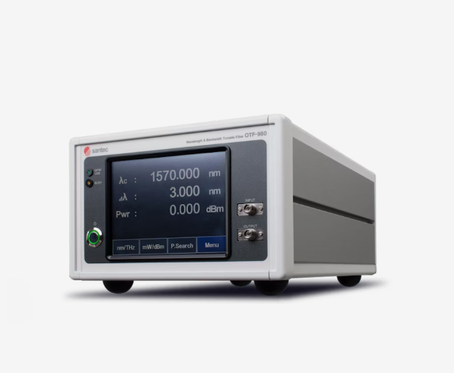 The OTF-980 is a new type of free space optics with a fine tuning device to ensure precise filter control and flat top passband formation. A highly integrated power meter monitors output power and features an automatic peak search function. GPIB, Ethernet, USB external interface can be matched with industry standard SCPI, and the command set can be used for remote operation and measurement. The OTF-980 can also be operated via the front panel touch screen.