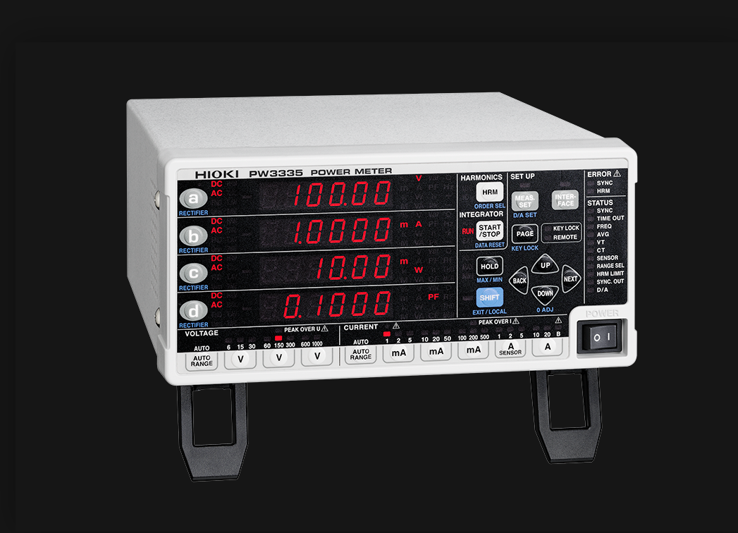 HIOKI Benchtop power meters and power Analyzers are best-in-class power measuring instruments that measure AC/DC standby power for high-power loads. Measure single-phase to three-phase lines with high precision and accuracy. The PW3335 provides high measurement accuracy and can handle higher peak currents (i.e. peak factor) in the lower current range while minimizing the influence of the power factor, thus greatly helping to reduce the uncertainty of power measurements, especially when the measured standby power is in the μA class.