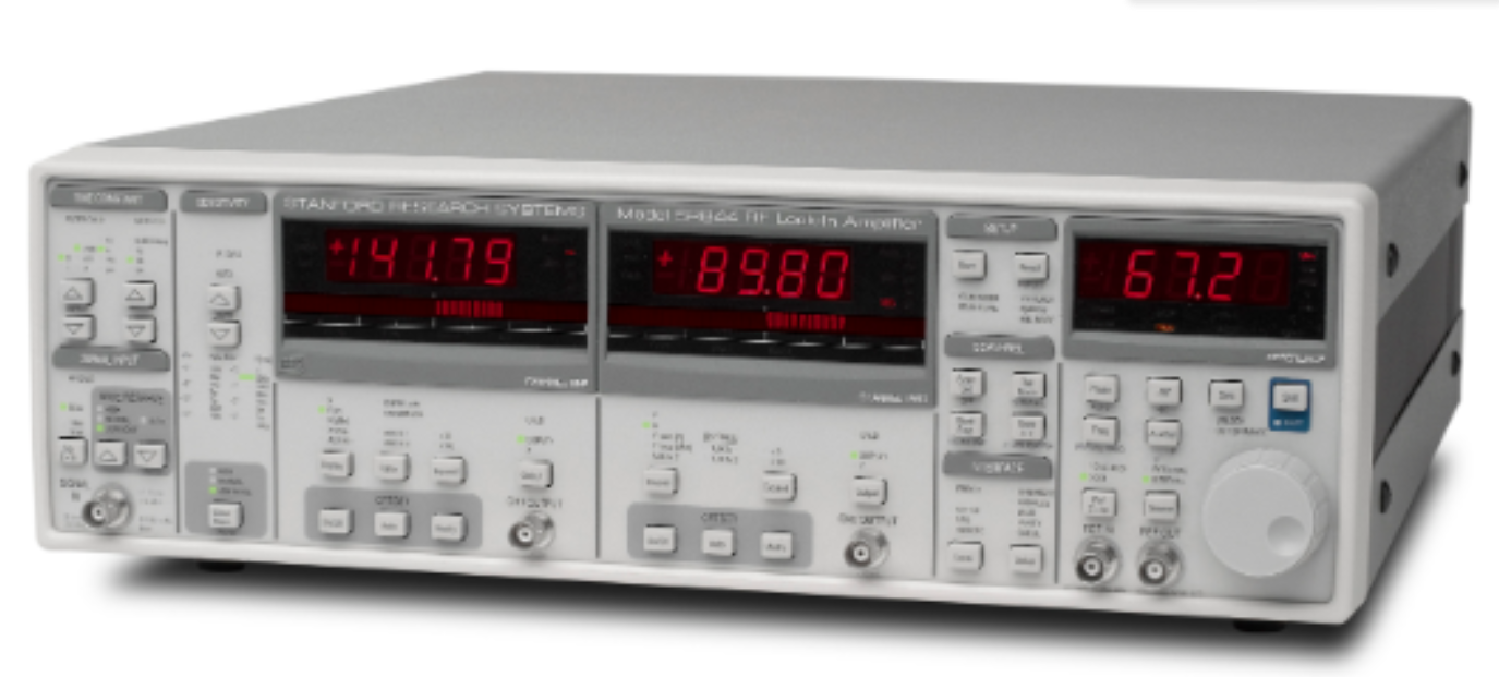 The SR844 is the broadband-wide phase-locked amplifier offered by SRS. It offers unmatched performance with a frequency range of 25 kHz to 200 MHz and a drift-free dynamic reserve of up to 80 dB. The SR844 includes many of the features, ease of operation and programmability expected of an SRS DSP phase-locked amplifier.