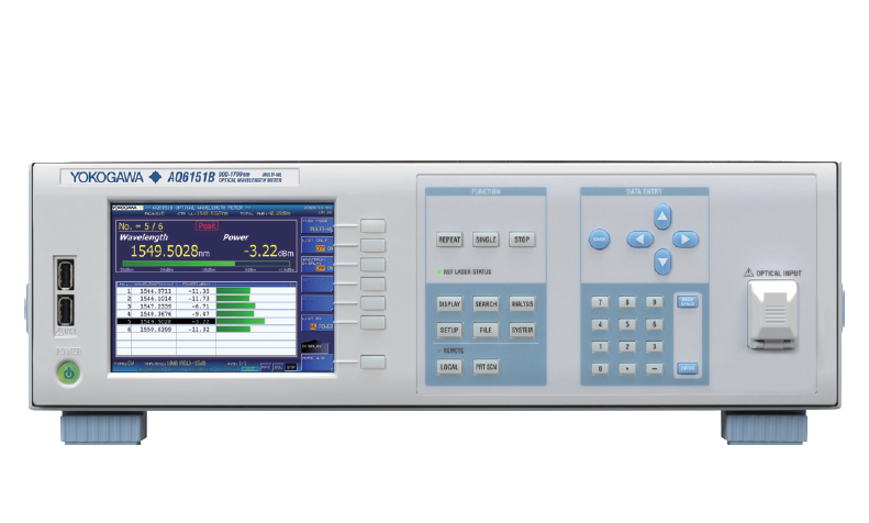 The AQ6151B is a high-precision optical wavemeter with wavelength accuracy up to ±0.2ppm, which can meet the requirements of the highest level of accuracy measurement. Real-time calibration ensures long-term measurement stability with a highly stable reference signal from a built-in wavelength reference light source. Michelson interferometer and high-speed fast Fourier transform (FFT) algorithm are used to measure not only single-wavelength laser signals, but also multi-wavelength laser signals from DWDM systems and Fabry Perot lasers. In addition, the technique can measure modulated laser signals in addition to continuous wave signals from optical terminal machines. The optimized optical design and data processing procedures greatly reduce the measurement time.