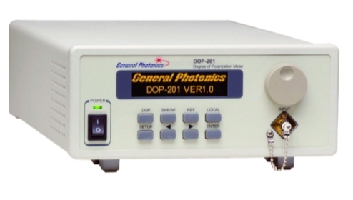 The DOP-201 uses a low-activation loss fiber optic compressor polarization controller combined with a patented max-minimum search method that enables it to explicitly measure low and high DOP values within 30 ms and operate over a wide wavelength range. Simultaneous measurement of the DOP and optical power levels of the source being measured can be used to obtain DOP power dependence and ensure low insertion losses during depolarizer manufacturing.