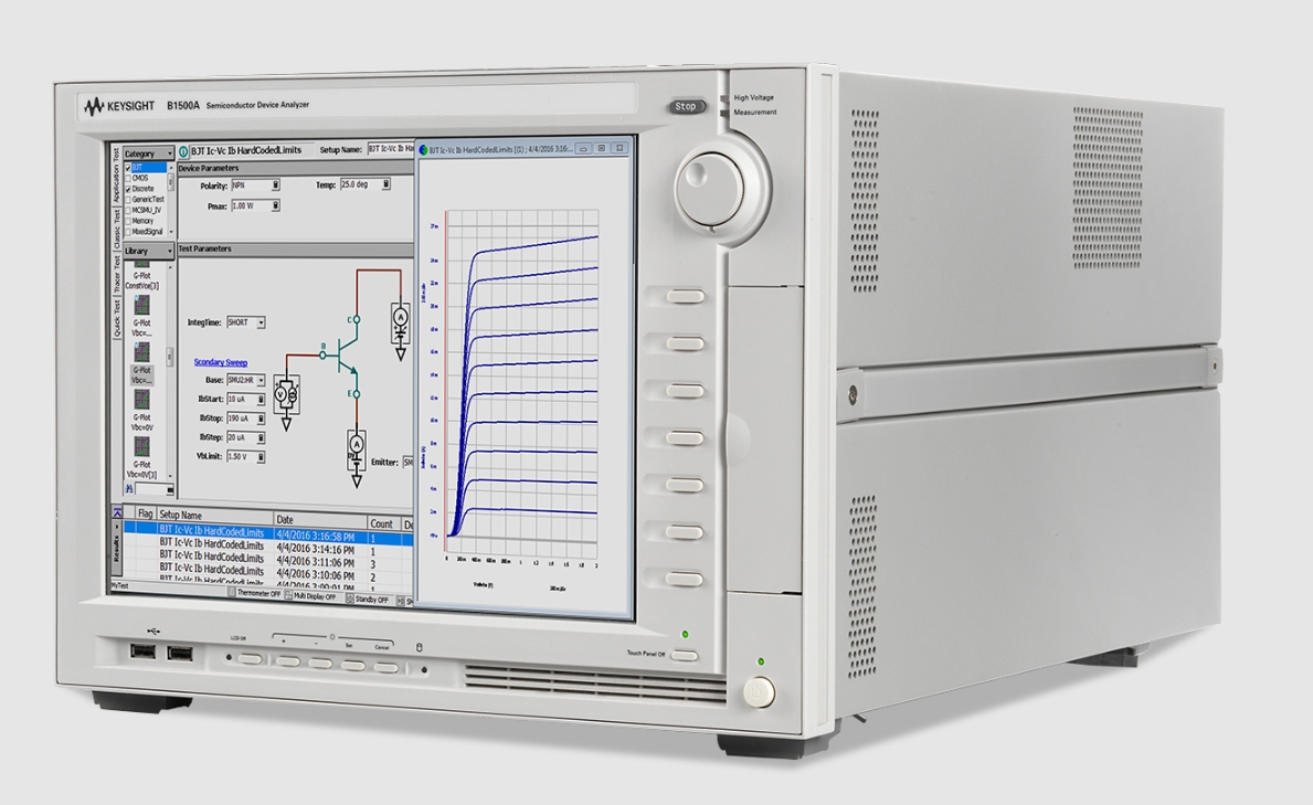 2.Keysight B1500A Precision Current and Voltage Analyzer Series Semiconductor device analyzer is an integrated analyzer that supports IV, CV, pulse/dynamic IV, etc., designed for the full range of characterization from basic to cutting-edge applications.