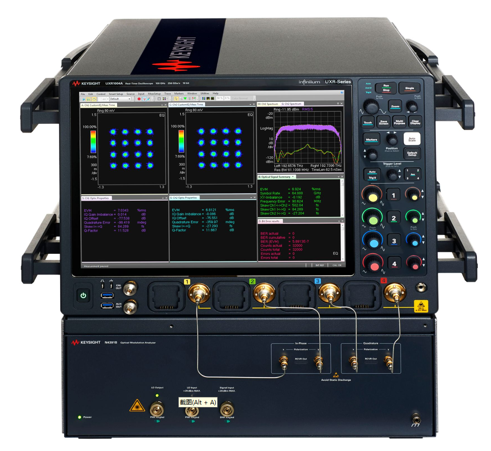 N4391B 光调制分析仪由一台 UXR 实时示波器和一个经过校准的相干光接收机组成。它可以帮助您跟上 800 Gb/s、1.2 Tb/s 到 1.6 Tb/s 收发器的符号速率等级的发展。新的 O 波段版本支持在新兴的 1.3 μm 波段进行相干信号和设备测试,以供数据中心内互连使用。