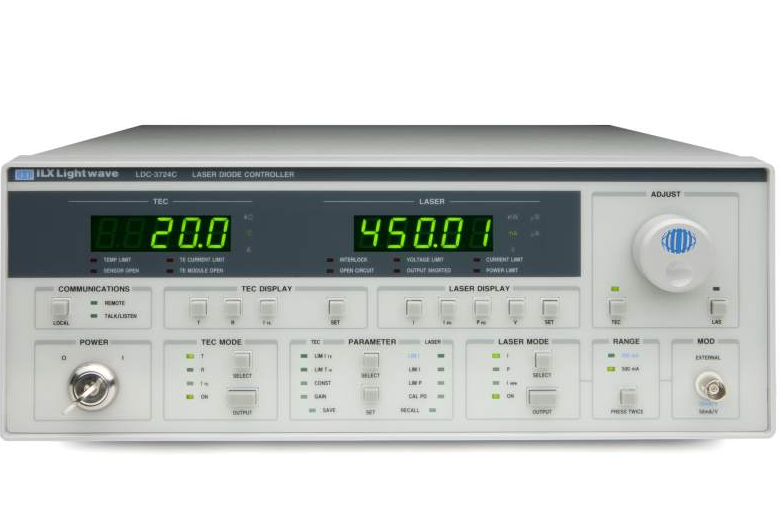 Thorlabs LDC2000激光二极管控制器是激光二极管和LED的非常精确的控制器。与Thorlabs TEC2000温度控制器一起使用时,可以精确调节激光电流或光输出功率和连接激光二极管的温度。结果,激光二极管用作稳定的光学发射器。