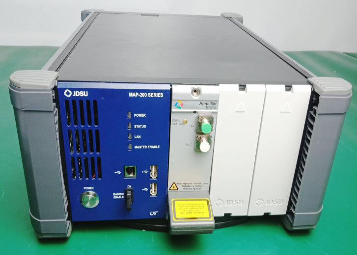 The JDSU MAP-200 Series Multiple Application Platforms are an optical test and measurement platform optimized for cost-effective development and manufacturing of optical transmission network elements. Today's rapidly changing optical market requires investment in productivity-enhancing technologies and tools, making the MAP-200 scalable test platform the right tool needed in even the most stringent environments. Based on the previous-generation Multiple Application Platform (MAP), the MAP-200 builds on the differentiation of offering the broadest portfolio of modules in the densest and most configurable platform. The MAP-200 is optimized for test applications in lab and manufacturing environments ranging from insertion loss testing to dispersion penalty testing.
